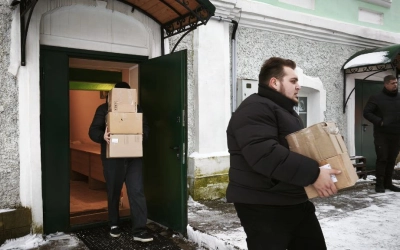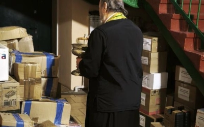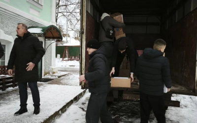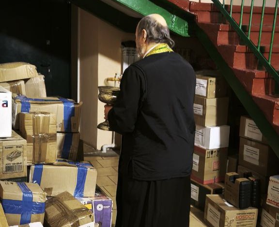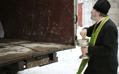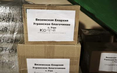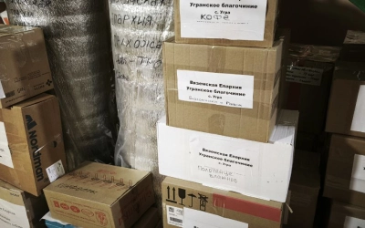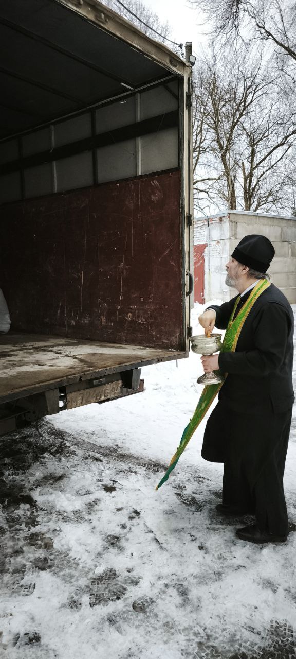 В день отправки груза секретарь Вяземского епархиального управления протоиерей Олег Переверзев по благословению преосвященнейшего Алексия епископа Вяземского и Гагаринского в здании епархиального гуманитарного Центра совершил напутственный молебен и окропил святой водой груз и автомобиль, на котором собранные подарки будут доставлены бойцам.