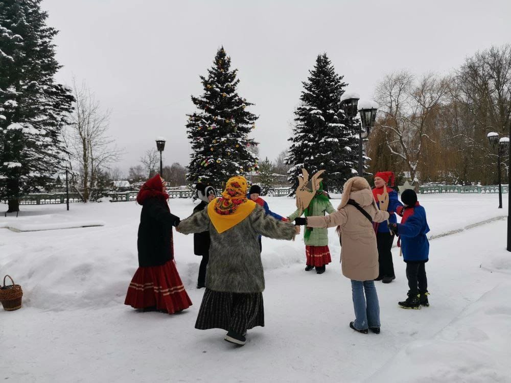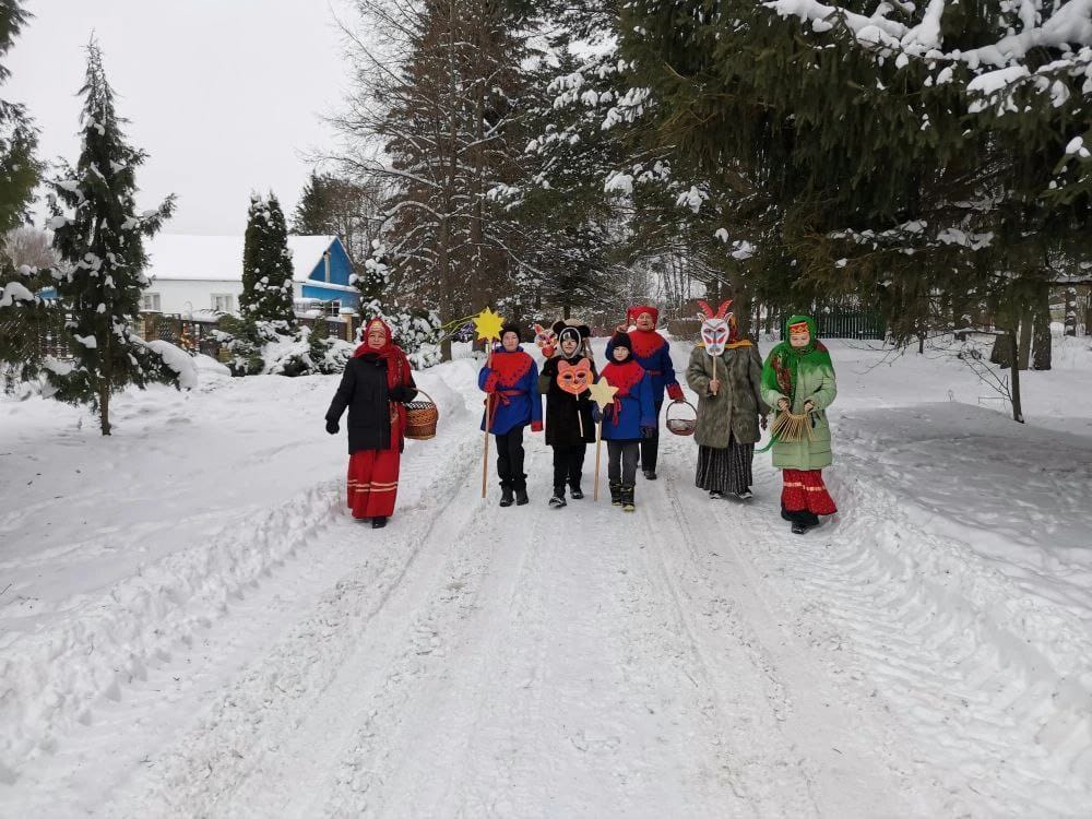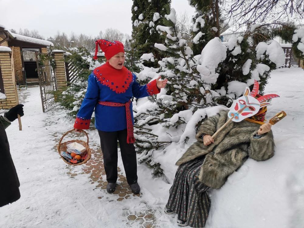 На улицы вышли артисты в ярких образах: скоморохи, звездарь, озорная коза, медведь и хозяйка. Они подарили односельчанам кусочек рождественского чуда.