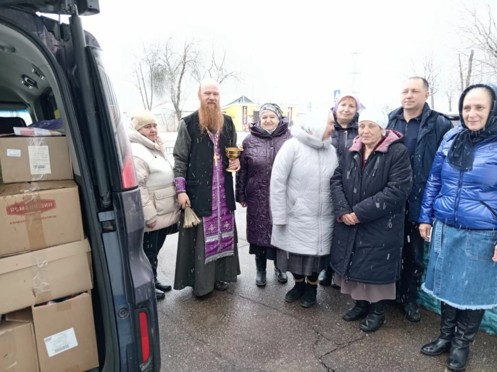 Благочинный Сафоновского округа, настоятель храма Рождества Христова иерей Сергий Чайкин благословил неравнодушных людей, участвовавших в акции, и освятил груз.