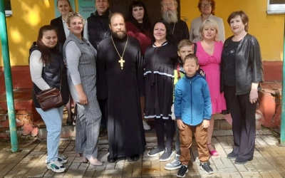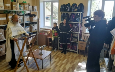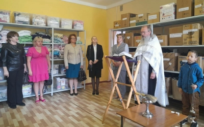 По благословению благочинного Сафоновского округа иерея Сергия Чайкина освящение склада "Серафимово подворье" было совершено настоятелем храма в честь пророка Божия Илии иереем Иоанном Цыбульским и клириком храма Рождества Христова иереем Андреем Быковом.