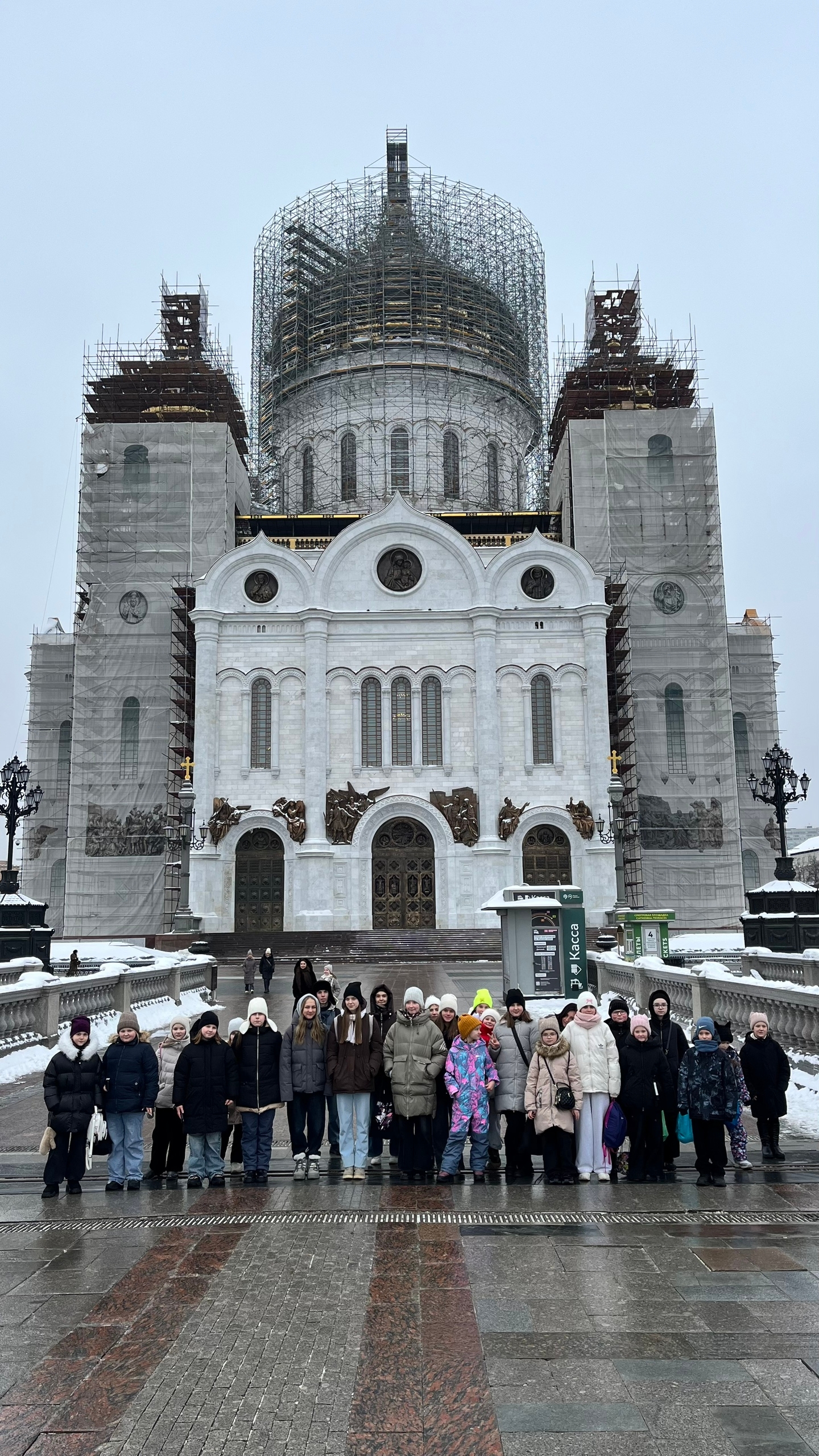 По приезде мы посетили храм Христа Спасителя. Обошли все залы; ребята были в восторге от увиденного. История храма Христа Спасителя связана с нелёгким временем в истории России. Он был построен в знак мужества русского народа в борьбе с нашествием Наполеона. Истории о доблестных героях, через которых Господь явил милость русскому народу, расположены на мраморных досках.