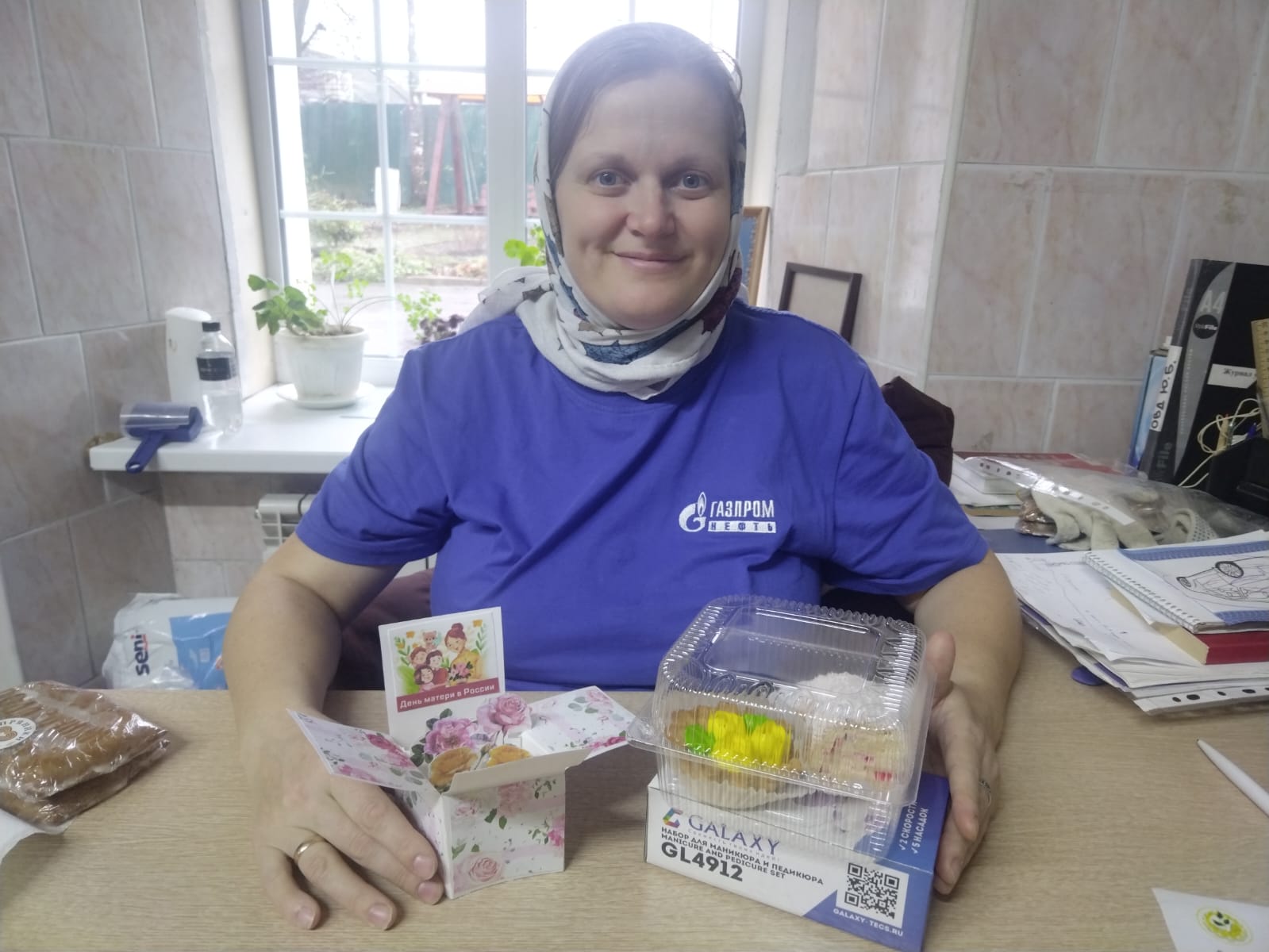 Сегодня в епархиальном гуманитарном центре царила особая, добрая атмосфера, ведь мы поздравляли мам. Вручали открытки, созданные ребятами из отряда «По ZoVy сердZa» вместе с А. Ю. Быстровой, а также угощали вкусными пирожными, которые были специально изготовлены в Социальной пекарне к этому дню.