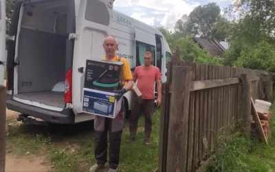 В рамках решения этой задачи приобретено и доставлено в г. Сафоново на гуманитарный склад при храме Рождества Христова (настоятель, благочинный Сафоновского округа иерей Сергий Чайкин) и в п. Угра на гуманитарный склад при храме святых равноапостольных Кирилла и Мефодия (настоятель протоиерей Валентин Зиньков) основное и дополнительное оборудование: сборные металлические стеллажи, напольные вешалки и вешалки для одежды, пластиковые контейнеры, стирально-сушильные машины, парогенераторы, гладильные доски, холодильные и морозильные шкафы.