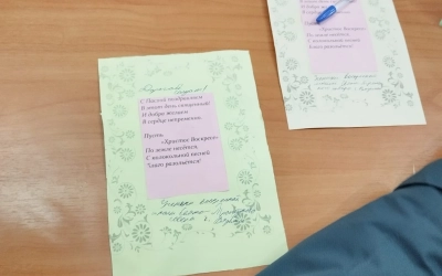 13 апреля 2025 года воспитанники воскресной школы Свято-Троицкого собора к празднику Светлого Христова Воскресения написали письма солдатам, несущим службу на СВО.