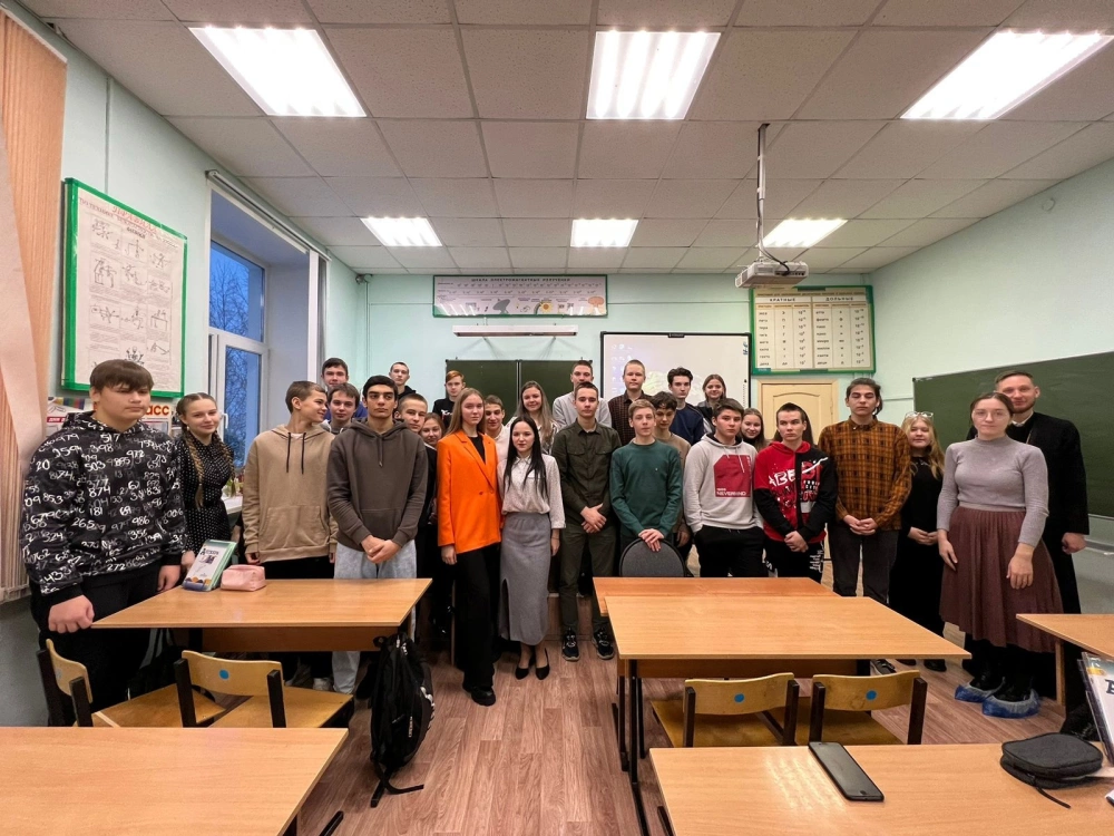 Руководитель Молодежно-Миссионерского отдела иеромонах Захария (Герасименко) и помощник руководителя отдела Ирина Сафонова провели беседу со школьниками на тему: «Православная церковь в 1920-1940-е годы»