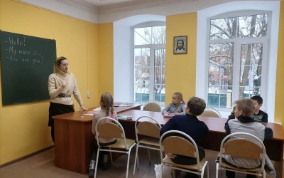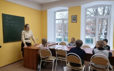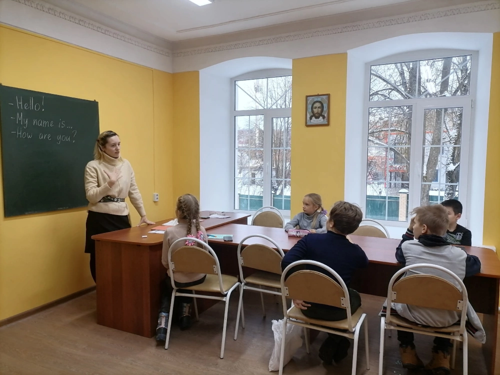 По просьбам родителей, которые выражают огромную благодарность Вяземской епархии за возможность бесплатного детского дополнительного образования, открылась группа по английскому языку для детей младшего возраста (8-12 лет). Занятия в этой группе ведет участница Молодежно-Миссионерского отдела Вяземской епархии, певчая храма Рождества Христова г. Вязьмы, учитель английского языка Александра Нейверт.
