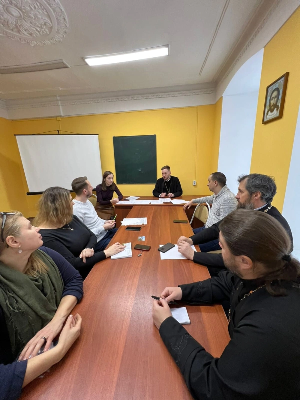 Собрание провел руководитель Молодежно-миссионерского отдела иеромонах Захария (Герасименко). На собрании присутствовали помощник руководителя отдела, а также помощники благочинных по молодежной работе Вяземской епархии.