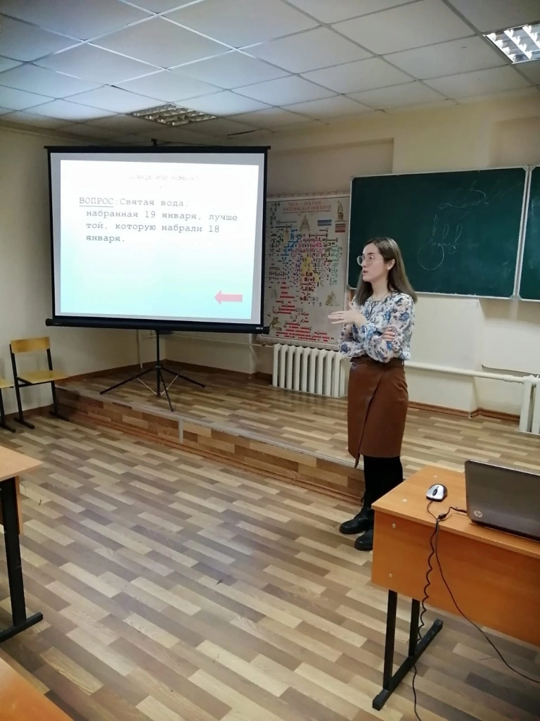 Встреча со студентами колледжа была посвящена празднику Крещения Господня, который отмечался 19 января. И. о. руководителя Молодёжно-миссионерского отдела рассказала ребятам историю и события праздника Святого Богоявления. Затем ребята поучаствовали в викторине, чтобы закрепить полученные знания о празднике.