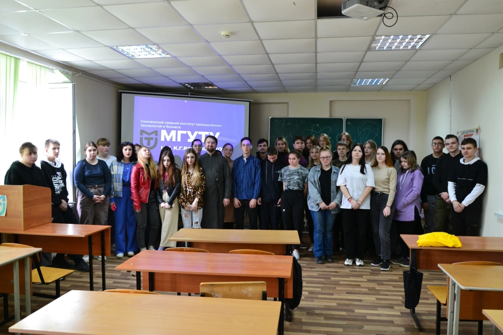 10 апреля 2023 г. в рамках программы "Разговоры о важном", иерей Владимир Прокопчук - руководитель Молодежно-миссионерского отдела Вяземской епархии и Ирина Сафонова - помощник руководителя Молодежно-миссионерского отдела Вяземской епархии провели беседу со студентами СКИПТБ на тему "Православие в жизни молодежи".