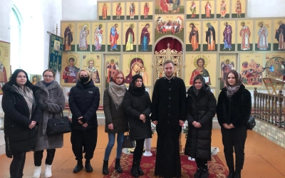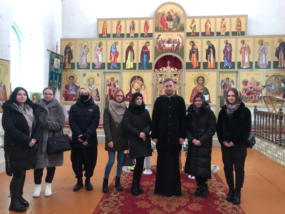 Настоятель иеромонах Захария провел экскурсию, познакомил гостей с историей и устройством храма и рассказал о приближающемся празднике Рождества. После чего за чаепитием молодежь и священник могли задать друг другу интересующие вопросы и обсудить темы, которые волнуют молодое поколение в настоящее время.