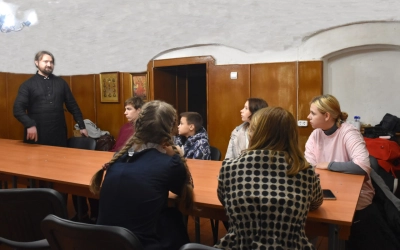 Встреча началась со вступительного слова руководителя епархиального молодежного Отдела иерея Владимира Прокопчука, в котором священнослужитель сердечно поприветствовал присутствующих молодых людей, а также поделился с ними планами Отдела на будущее. Затем его помощник Давид Тигранович Сарибекян предложил участникам встречи дискуссию на важные темы, касающиеся жизни современной молодежи и ее роли в Церкви.