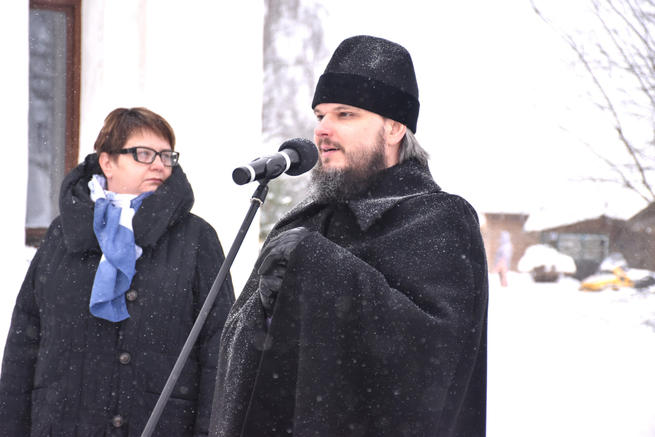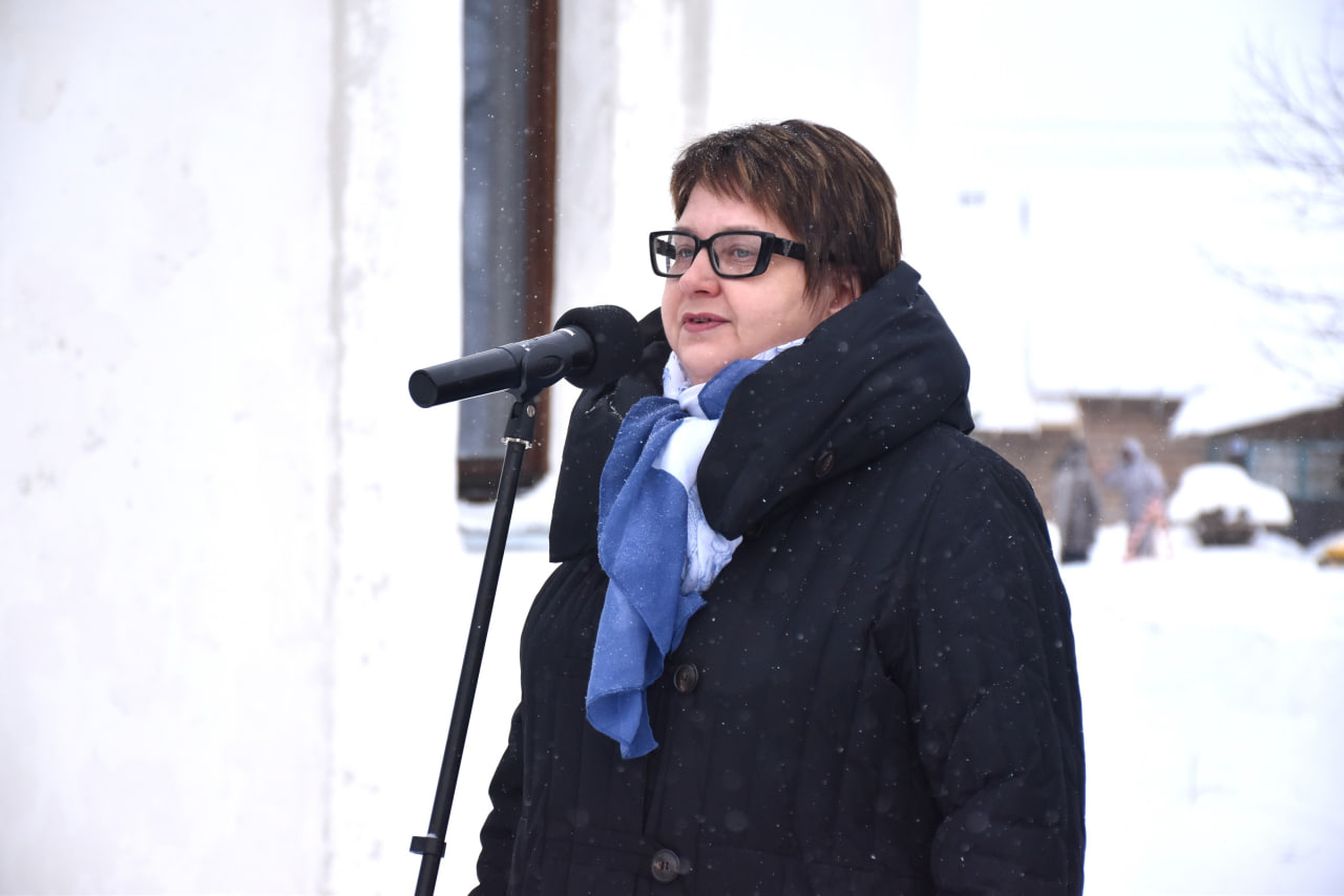 Торжественная часть продолжилась на территории храма, где к собравшимся спортсменам с приветственными словами обратились епископ Алексий и председатель Сычевской окружной Думы первого созыва Екатерина Анатольевна Трофимова.