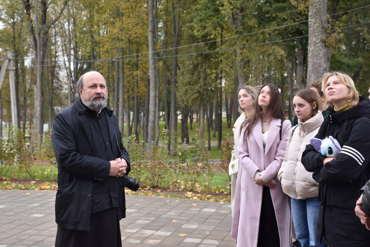 Отец Олег провел для участников экскурсию по территории реставрируемой усадьбы Шереметевых, рассказал о её истории, о том, как это место выглядело раньше и чем примечательна она для нашей культуры.