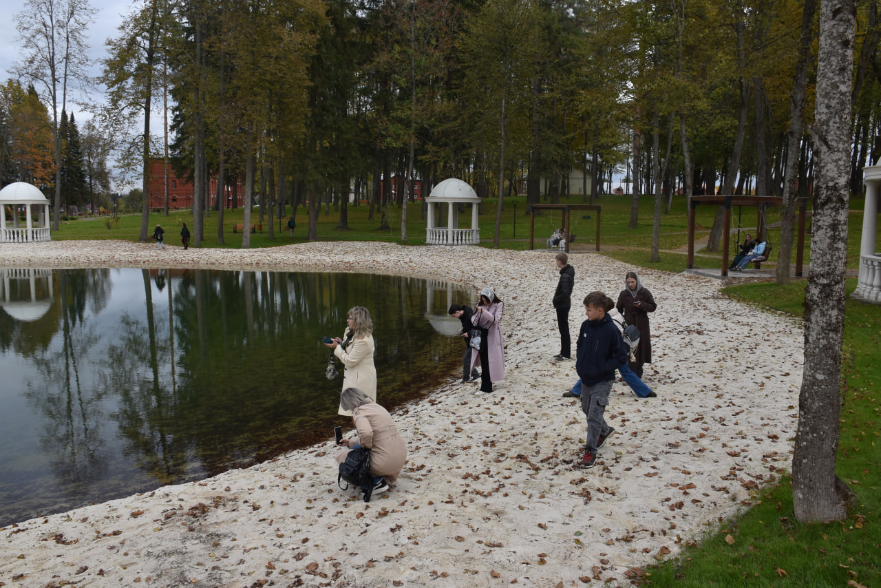 Вместе с ребятами посетили церковь Тихвинской иконы Божией Матери на территории усадьбы, после чего продолжили изучение этого культурно-исторического места.
