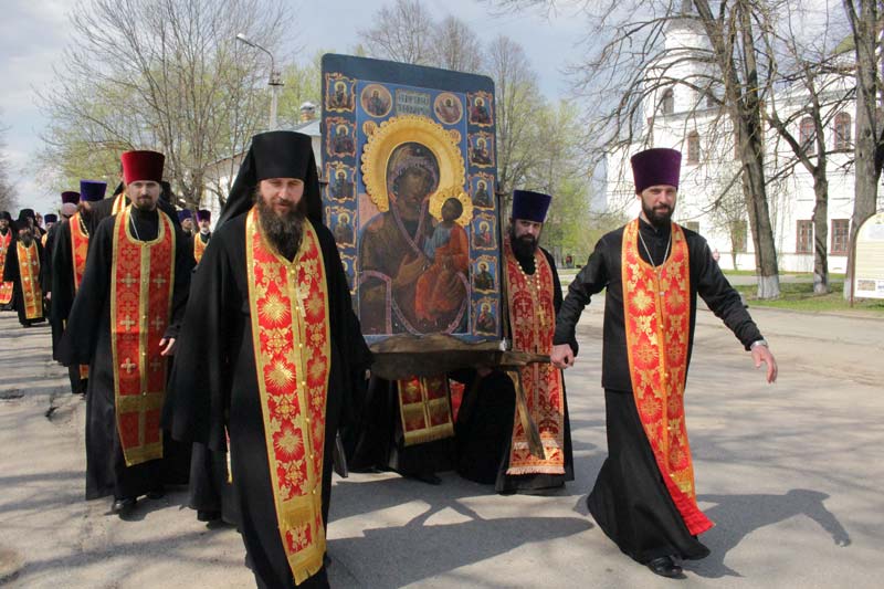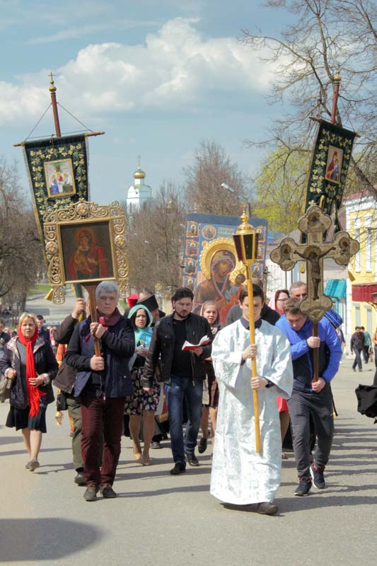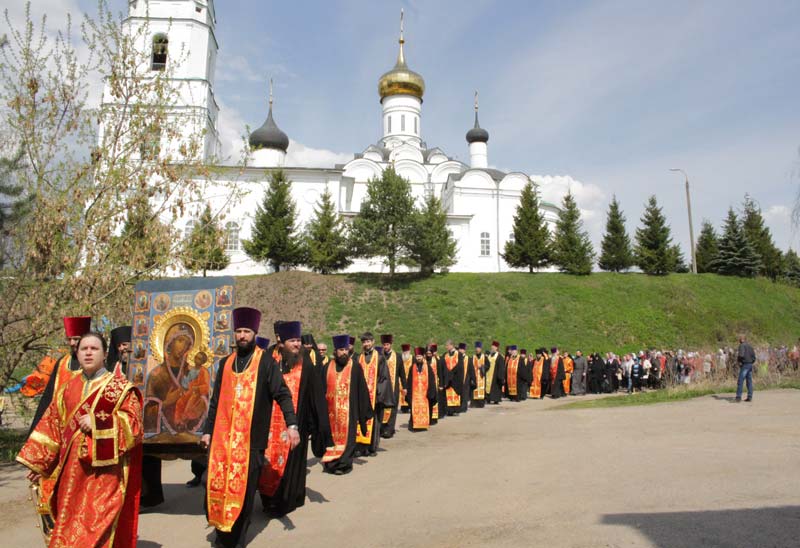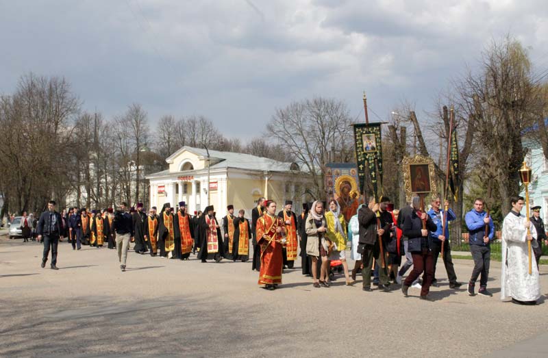 3 мая 2016 года. Несомненно, этот день войдет в историю городя Вязьмы, Вяземской епархии, как день особого торжества. Потому что в этот день возобновлена древняя традиция крестных ходов в Вязьме на Светлой седмице. По благословению Святейшего Патриарха Московского и всея Руси Кирилла каждый год после Божественной литургии во вторник Светлой Пасхальной седмицы в Свято-Троицком соборе чудотворная икона Пресвятой Богородицы «Иверская» будет износиться крестным ходом во все церкви города. Каждый день седмицы святыня будет переноситься в сопровождении архиерея, священства и мирян под звон колоколов и пасхальных песнопений.