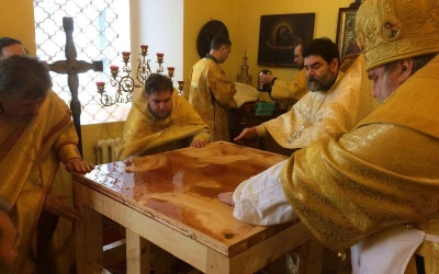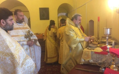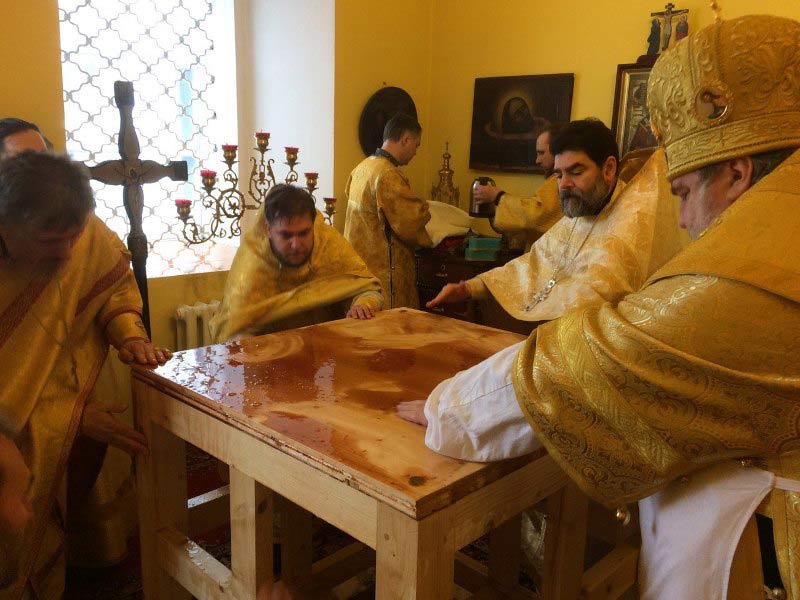 Дорогие братья и сестры, в сегодняшний день я бы особо хотел всех вас поздравить и с праздником святой великомученицы Параскевы Пятницы, и с освящением еще двух алтарей — Центрального алтаря в честь Преображения Господня и левого предела предельного храма, который сегодня был освящен в честь святителя Николая Чудотворца. Правый престол нашего храма был освящен в прошлом году 30 сентября в день памяти святых великомучениц Веры, Надежды, Любви и матери их Софии.