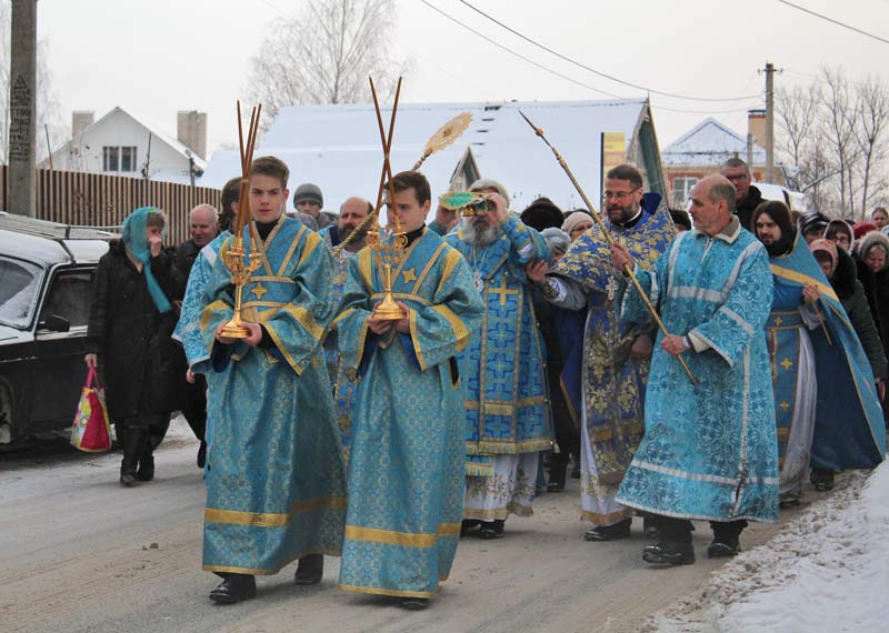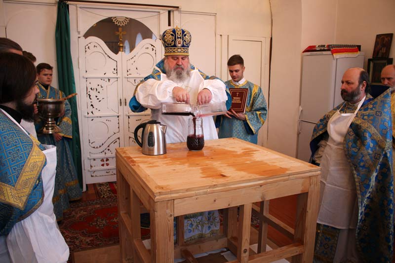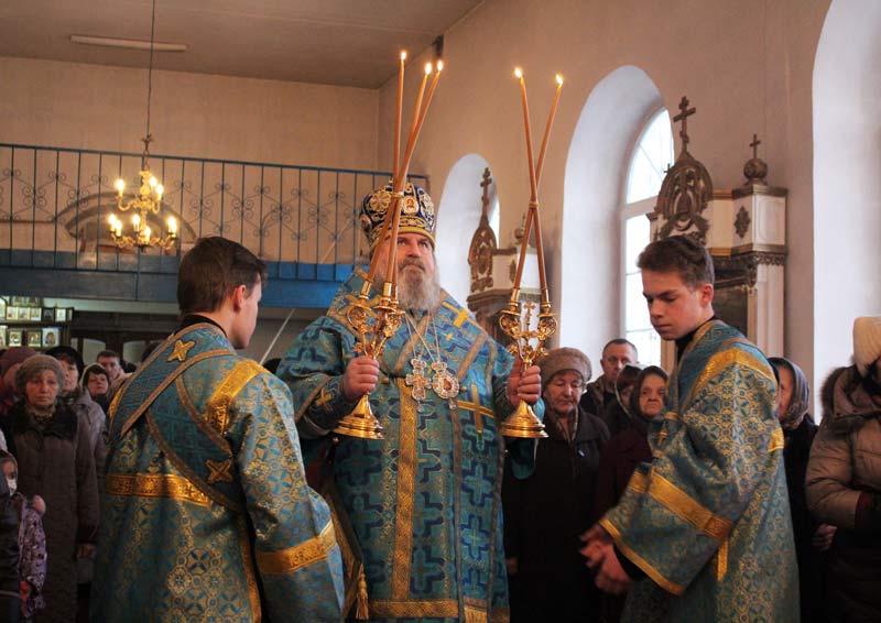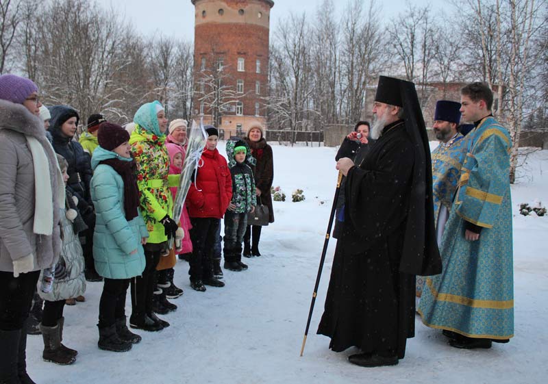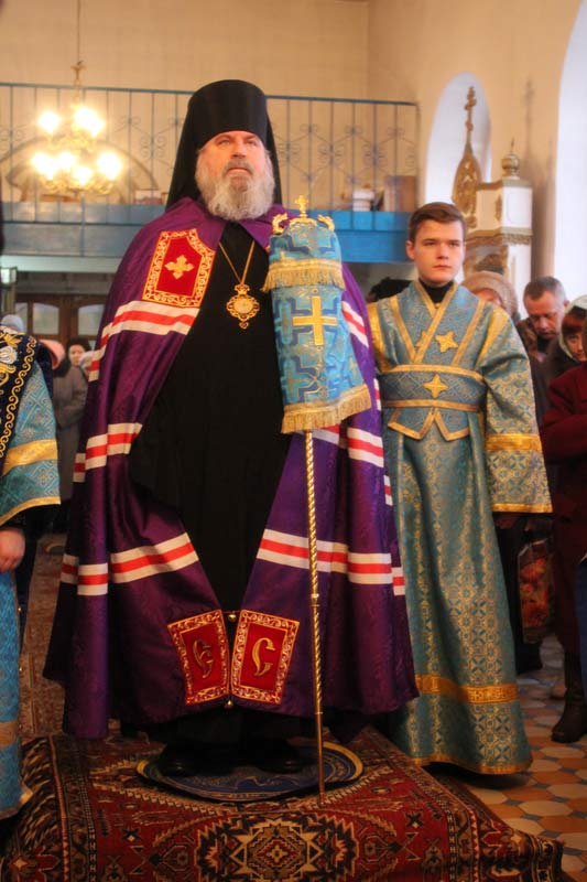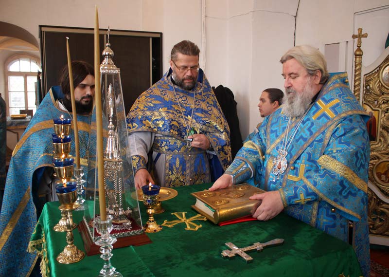 Его Преосвященству сослужили секретарь епархиального управления Вяземской епархии протоиерей Валерий Калинин, настоятель Введенской церкви протоиерей Олег Переверзев, настоятель Свято-Троицкого собора иерей Александр Курмелёв, священник Введенской церкви протоиерей Георгий Биляк, дьякон Свято-Троицкого собора Евгений Ткач.