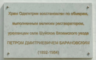 П.Д. Барановский спас от разрушения Собор Василия Блаженного на Красной площади, Спасский собор Андроникова монастыря, вынес мощи митрополита Алексия из Чудова монастыря в Кремле перед его разрушением, основал музеи в с. Коломенском и Андрониковом монастыре, составил проекты реставрации и реставрировал храмы и исторические здания в Москве, Смоленске, Ярославле, Ростове, Новгороде, Владимире, Юрьеве-Польском, Чернигове, на Соловках и во многих других местах. По воспоминаниям Ольги Петровны, дочери знаменитого реставратора отец спас около от разрушения около 90 храмов. К главному украшению нашей обители — храму Одигитрии Петр Дмитриевич Барановский вернулся в 1960-е годы — реставрация храма проводилась под его руководством. Благодаря самоотверженному труду П.Д. Барановского уникальный храм Одигитрии возродился из руин и по праву является одним из ярчайших памятников русского зодчества.
