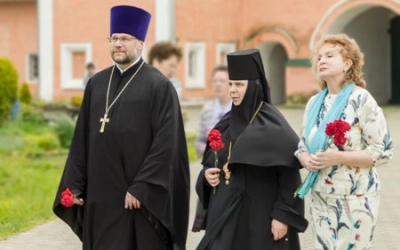 Перед собравшимися на открытии мемориальной доски гостями выступили благочинный церквей Вяземского округа Вяземской епархии отец Валерий (Калинин), настоятельница Иоанно-Предтеченского монастыря игумения Лаврентия (Павлюченкова), заместитель главы муниципального образования «Вяземский район» Т.А. Якушева.