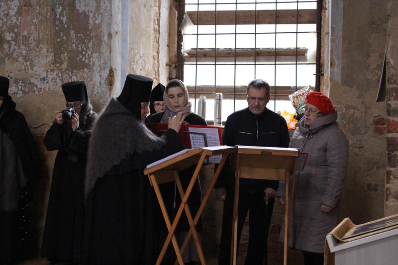 Молитвенные песнопения исполнил сборный хор Иоанно-Предтечева монастыря и Свято-Троицкого кафедрального собора г. Вязьма.