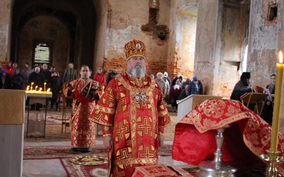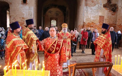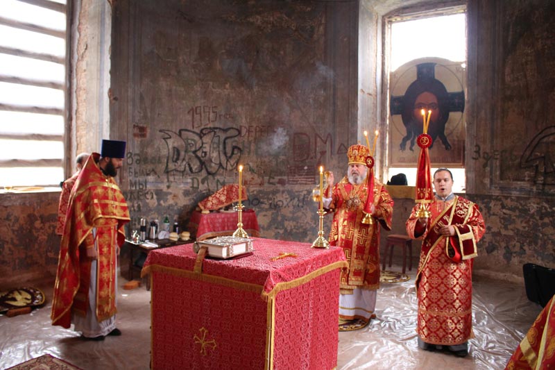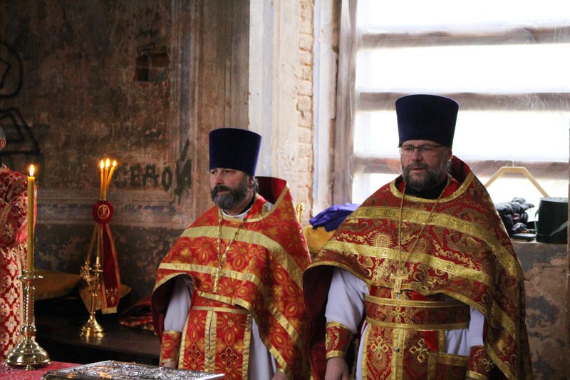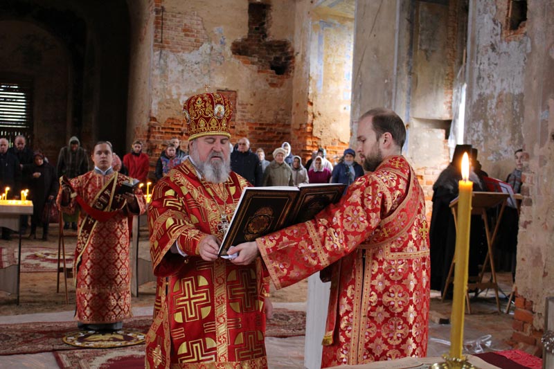 В завершение богослужения епископ Сергий обратился к присутствующим с архипастырским словом, в котором поздравил всех с Днем памяти святых мучениц Веры, Надежды, Любови и матери их Софии, настоятеля храма и прихожан с престольным праздником и со знаменательным событием — совершением первой Божественной Литургии в возрождающемся храме спустя более 80 лет после его закрытия.