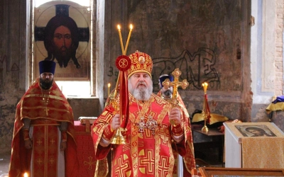 За богослужением епископ Сергий вознес молитву о прекращении междоусобной брани на Украине.