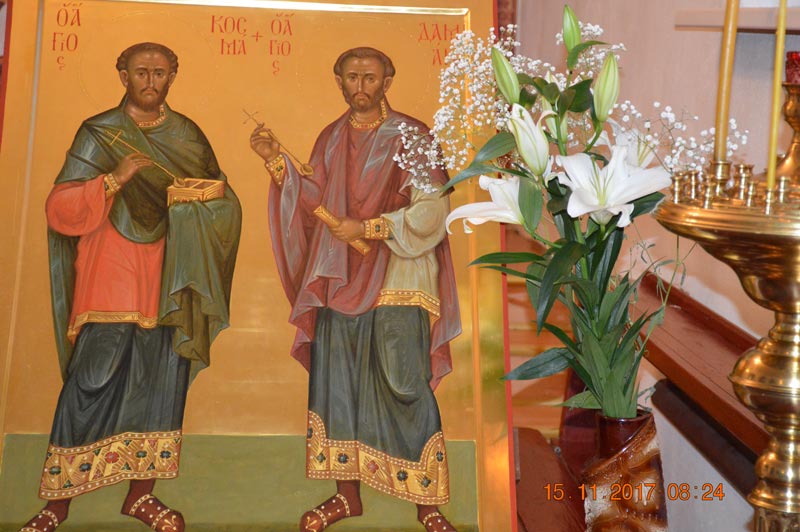 Был совершен малый молебен с чтением молитвы святым бессребреникам и чудотворцам Косме и Домиану.