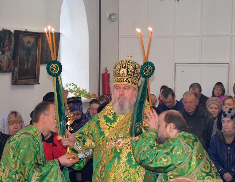 Его Преосвященству сослужили: благочинный Сычевского округа и настоятель Благовещенского храма протоиерей Анатолий Чайкин, духовенство благочиния, настоятели приходов, диаконы.