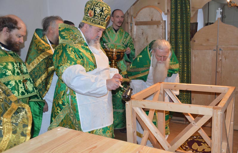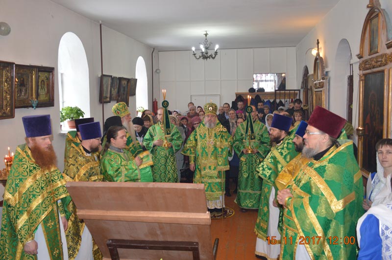По завершении торжественного чина освящения престола и предела храма епископ Сергий возглавил Божественную литургию. За Литургией владыка вознес молитву об Украине, народе украинском, о мире и благоденствии. Многие причастились Пречистых Тела и Крови Христовых.