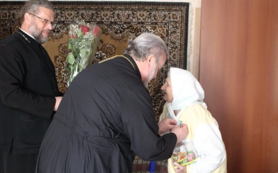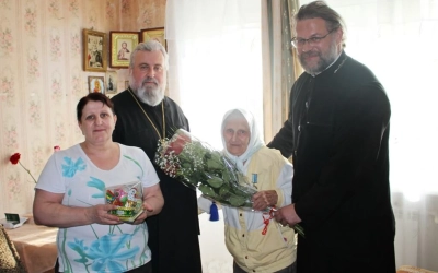 Преосвященный Владыка Сергий поздравил Параскеву Максимовну спраздником Светлого Христова Воскресения и праздником Великой Победы, пожелав крепкого здоровья и долгих лет жизни.