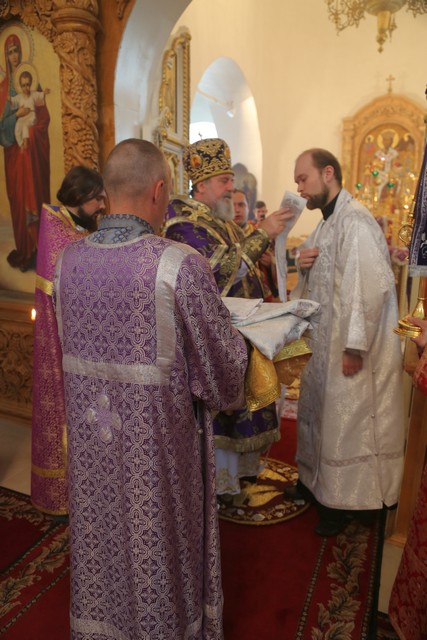 После Великого входа епископ Сергий совершил хиротонию иеродиакона Андрея (Дергачёва-Белошецкого) в сан пресвитера, с возложением набедренника.