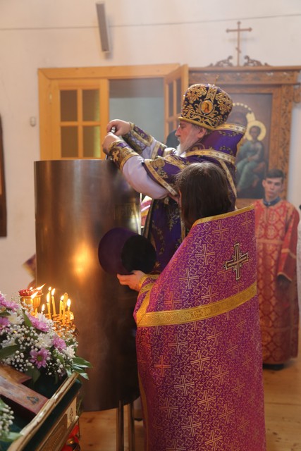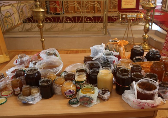 В конце Литургии, после заамвонной молитвы, был отслужен водосвятный молебен. После молебна епископ Сергий освятил свежий урожай мёда.