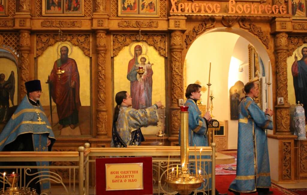 Богослужение сопровождалось пением архиерейского хора под управлением регента Елены Платоновой.