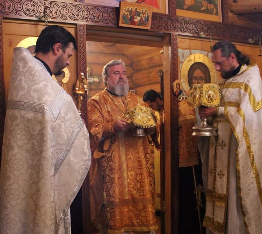 29 августа 2018 года, Преосвященный Сергий, епископ Вяземский и Гагаринский, в день престольного праздника, совершил Божественную литургию в храме Спаса Нерукотворного деревни Телепнево.
