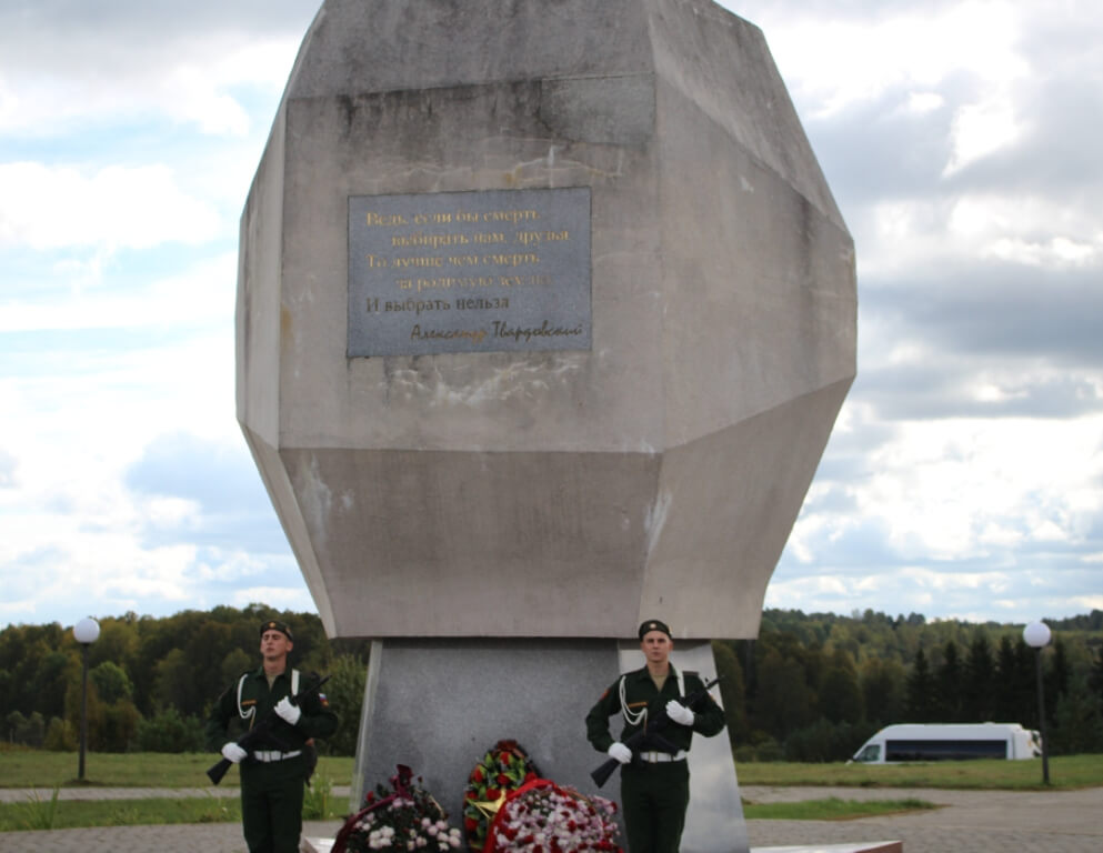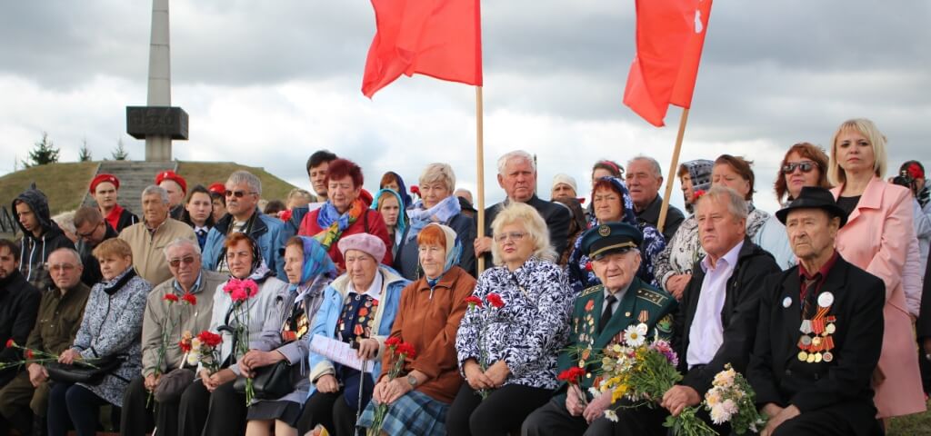 На церемонии присутствовали: Глава муниципального образования "Вяземский район" Смоленской области Инна Васильевна Демидова; ветераны Великой Отечественной войны; поисковые отряды, чьими силами были подняты останки воинов погибших в боях за наше Отечество; родственники погибших воинов, чьи имена были установлены; военнослужащие Вяземского гарнизона; и просто те люди кто неравнодушен к памяти вождей и воинов души свои положивших за Отечество.