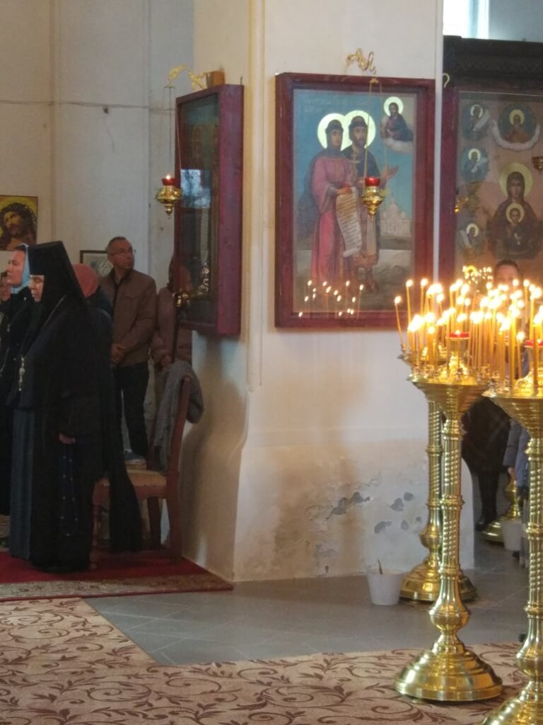 Божественную Литургию в храме Покрова Пресвятой Владычицы нашей Богородицы возглавил иерей Максим. За богослужением молились настоятельница Иоанно-Предтеченского монастыря игуменья Лаврентия (Павлюченкова) с сестрами святой обители. Радость совместной молитвы с ними разделили многочисленные прихожане монастыря и паломники из Москвы, Санкт-Петербурга и жители близлежащих деревень. Божественная Литургия сопровождалась пением хора Иоанно-Предтеченской монастыря.