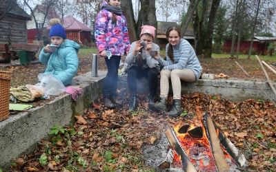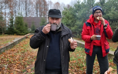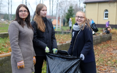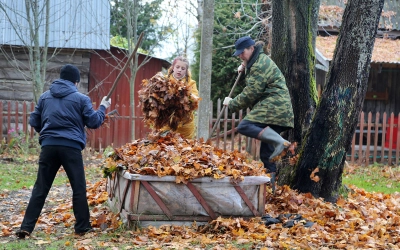 Осенняя пора... Осыпалась с деревьев листва. Для того, чтобы не оставлять этот лиственных покров гнить под снегом, священники и молодежь три часа трудились, собирая листву в мешки и унося в лес. Потрудились на славу. А трудящийся достоин пропитания, по слову апостола Павла. Ароматный чай из термоса, бутерброды и конфеты на свежем воздухе - утешение велие. И фото на память об этом замечательном дне.