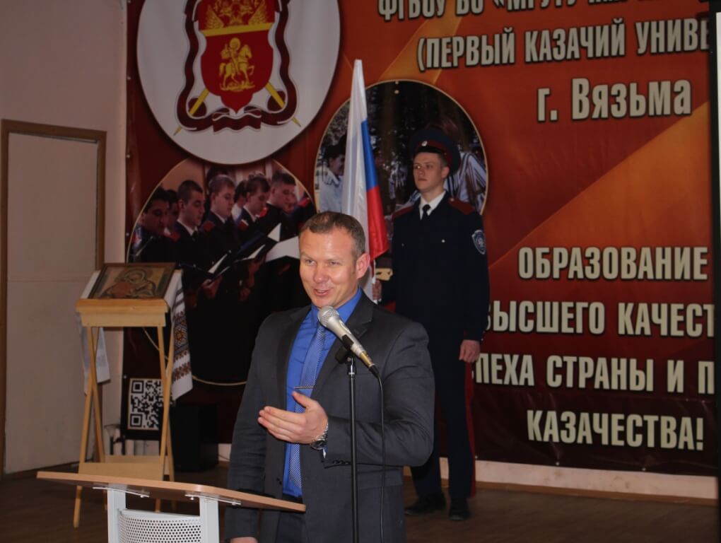 2 ноября 2018 года, Преосвященный Сергий, епископ Вяземский и Гагаринский посетил научно-практическую конференцию «Соработничество Церкви и казачества во благо Отечества и воспитания подрастающего поколения», которая состоялась на базе Института пищевых технологий и бизнеса (филиал) ФГБОУ ВО «Московский государственный университет технологий и управления имени К.Г. Разумовского (Первый казачий университет)» в г. Вязьма.