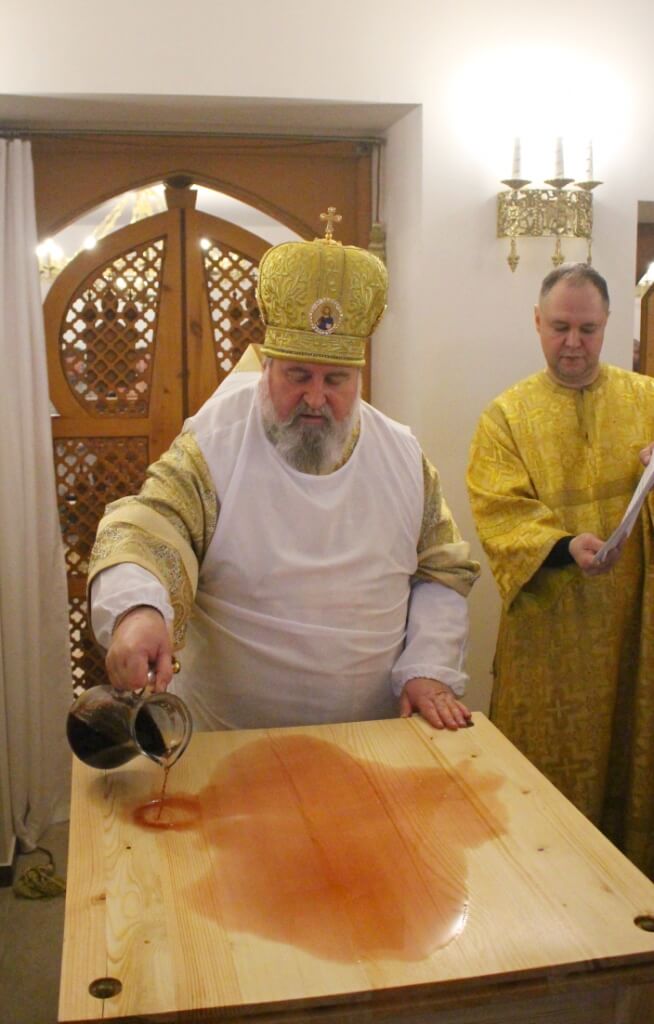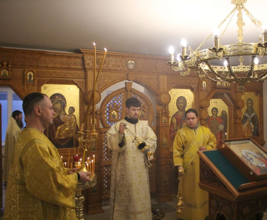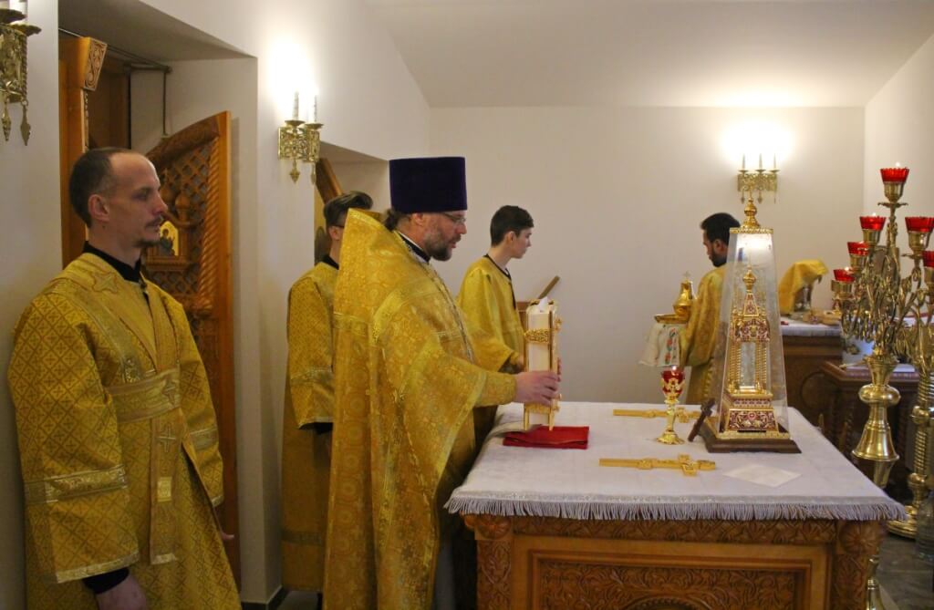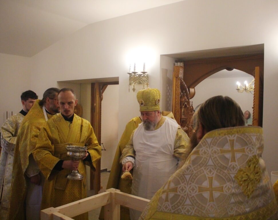 После великого освящения храма Преосвященный епископ Сергий совершил Божественную литургию свт. Иоанна Златоустого.