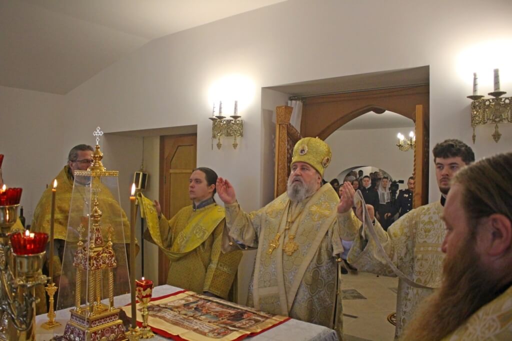 После сугубой ектении архипастырь вознес молитву о преодолении междоусобной брани на Украине.