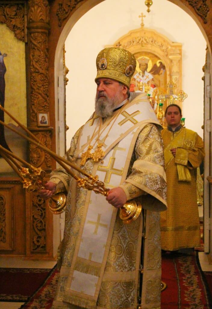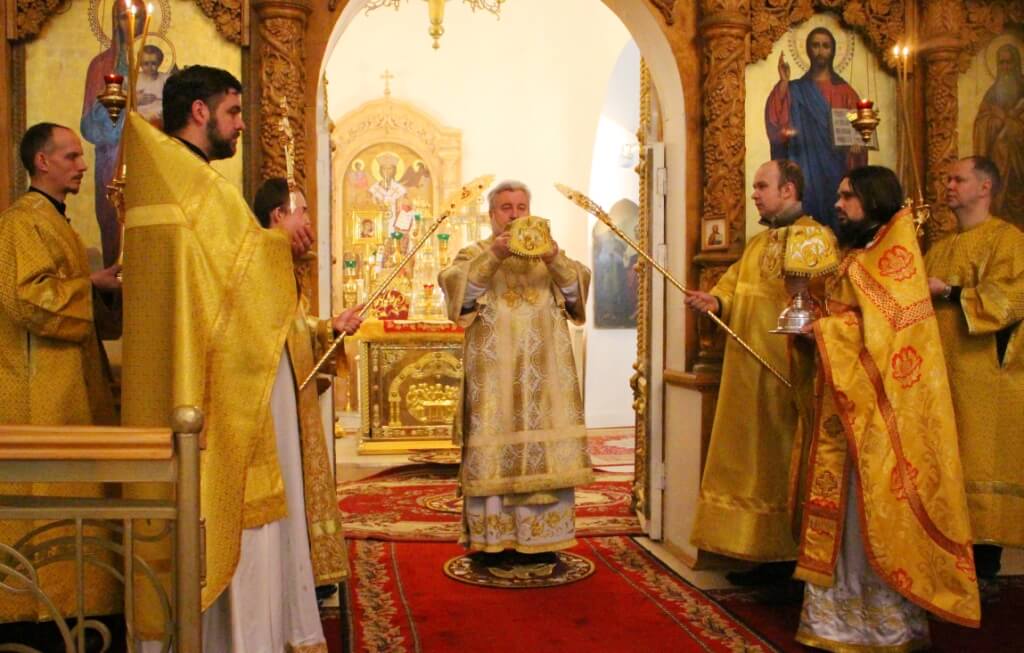 После сугубой ектении Преосвященный архипастырь вознес молитву о прекращении междоусобной брани на Украине.