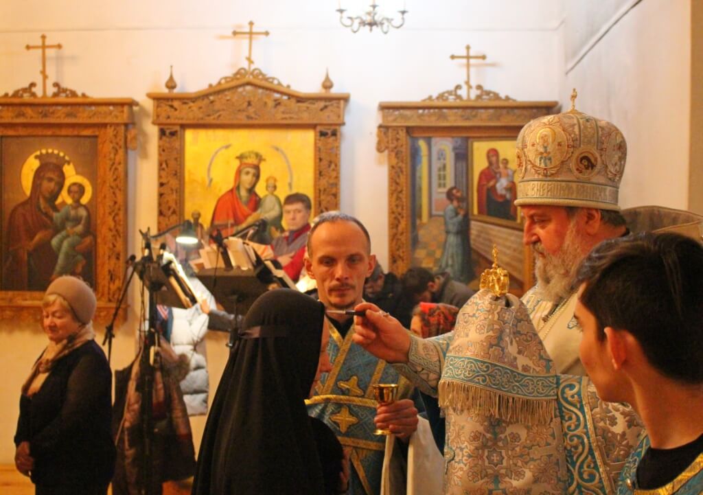 В продолжении богослужения Владыка Сергий преподал верующим благословение в помазании освященным елеем.