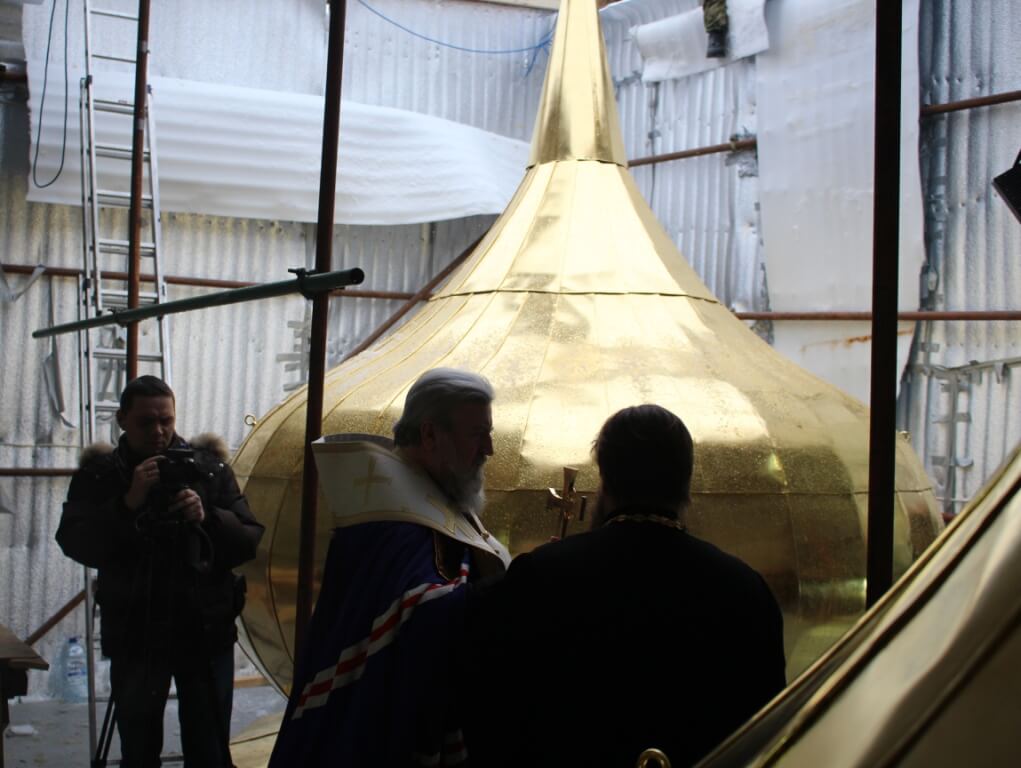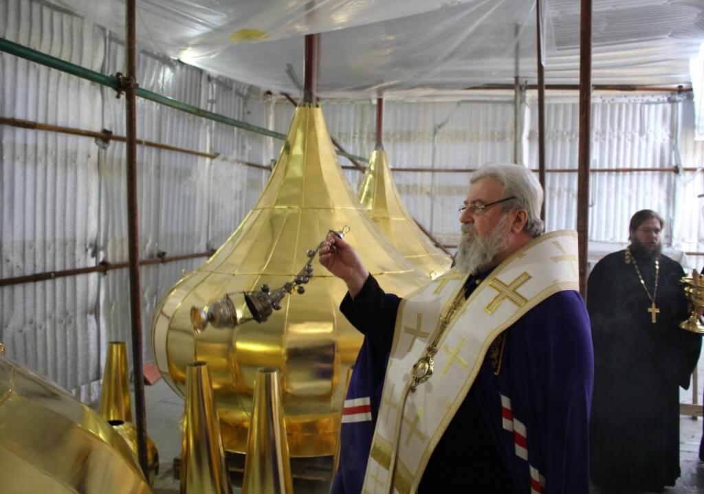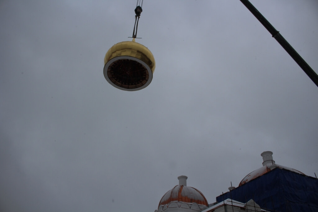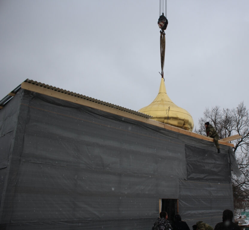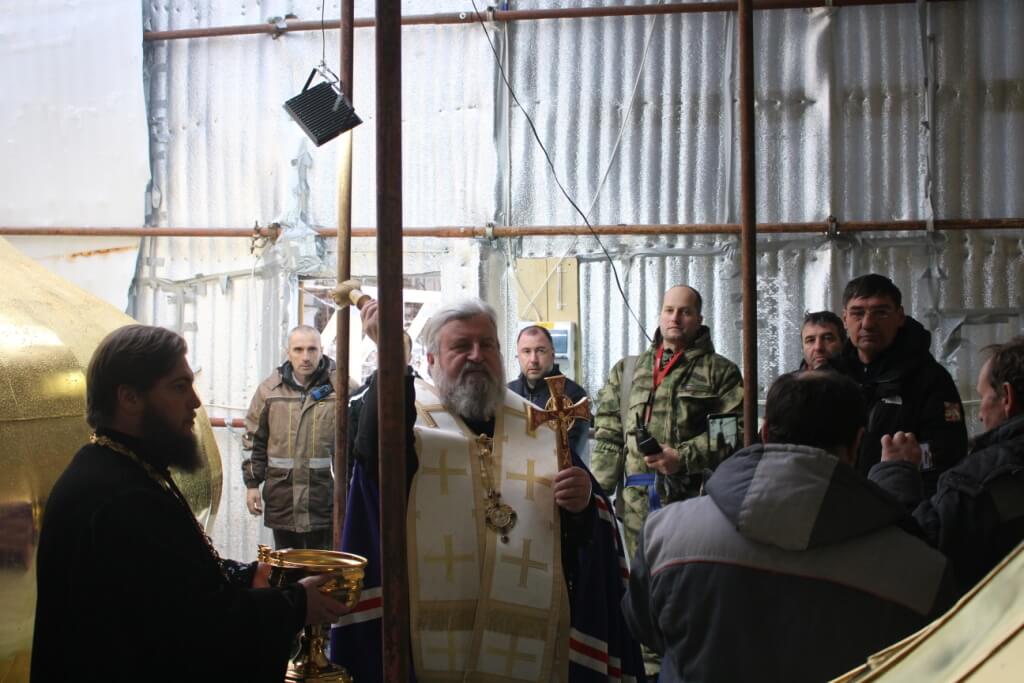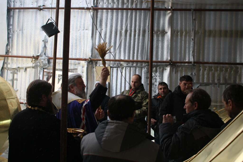 По окончании освящения начался подъём и установка куполов на храм.