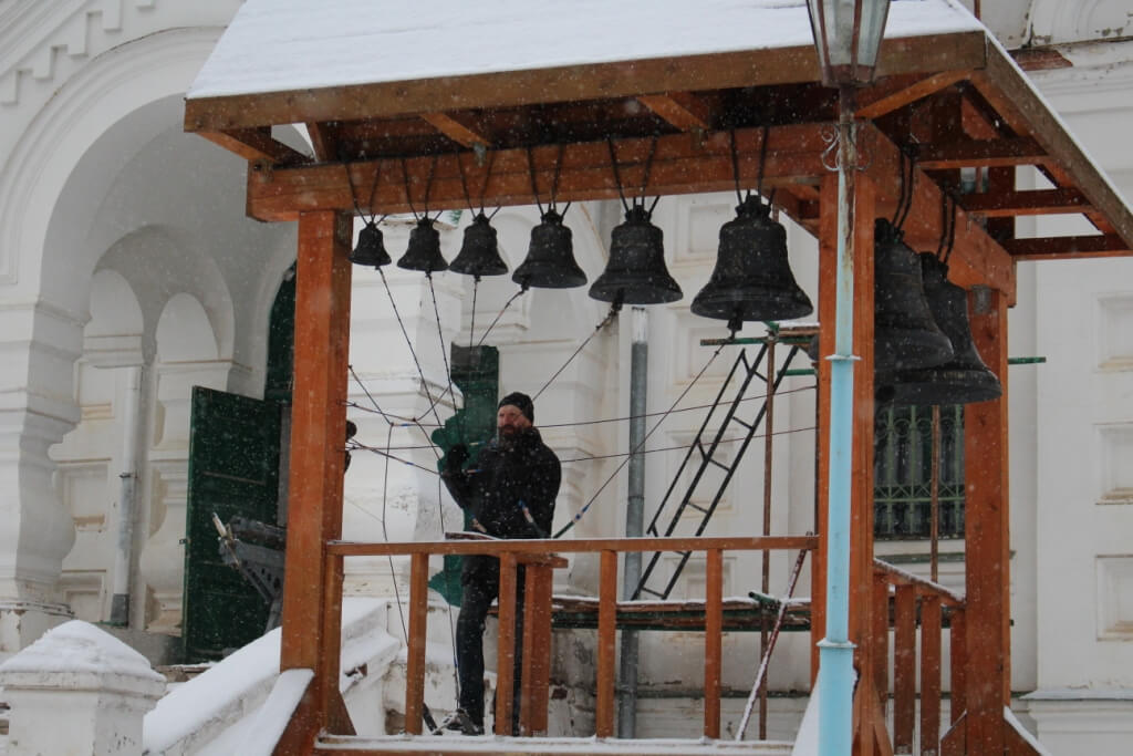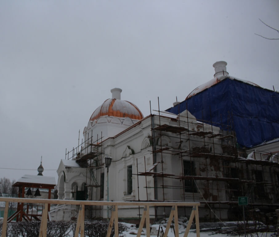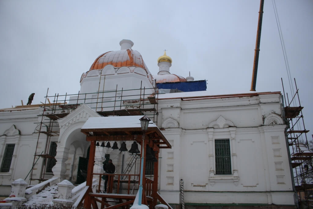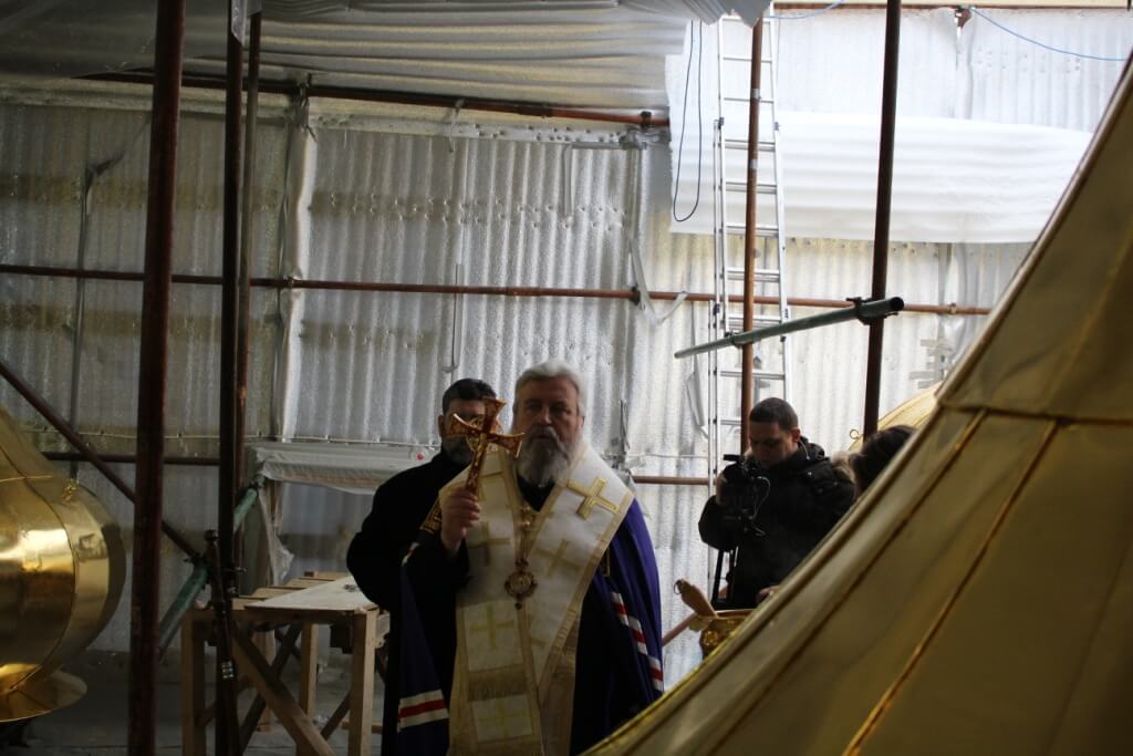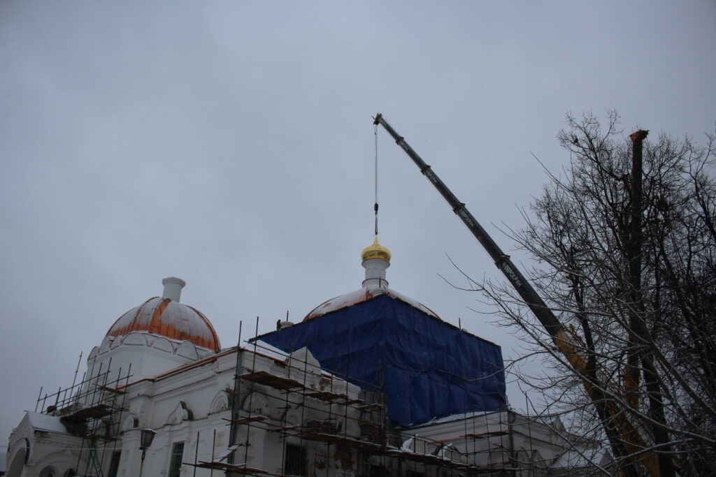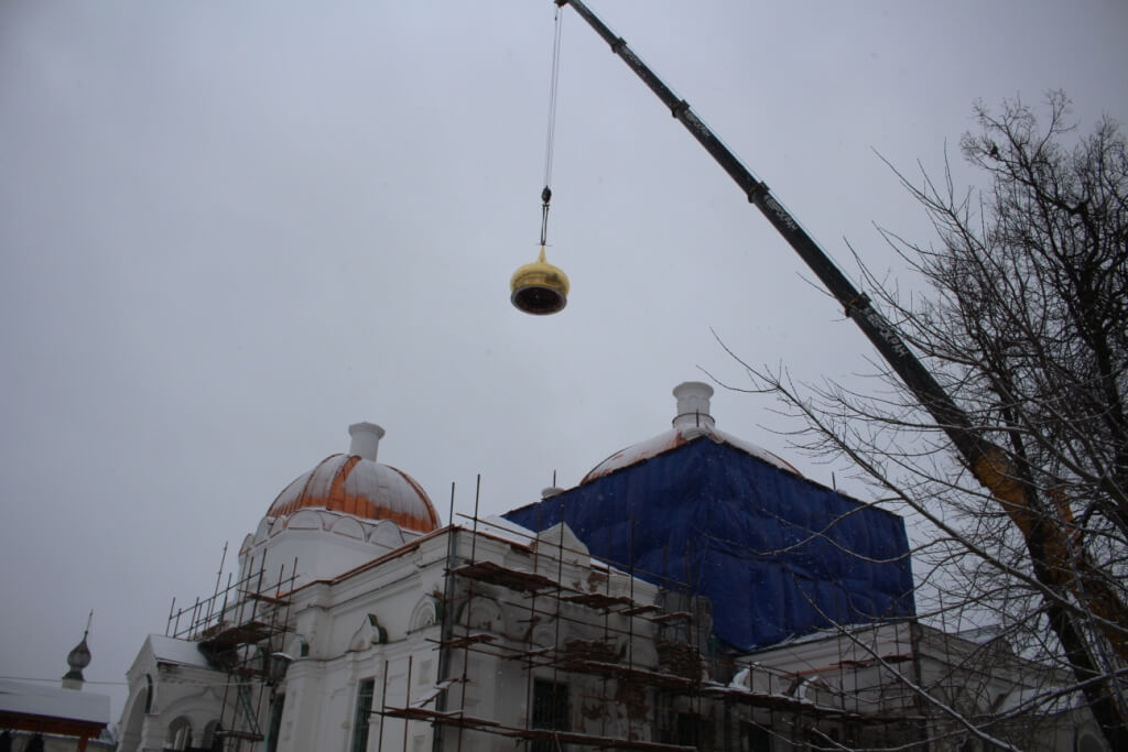 По окончании освящения начался подъём и установка куполов на храм.