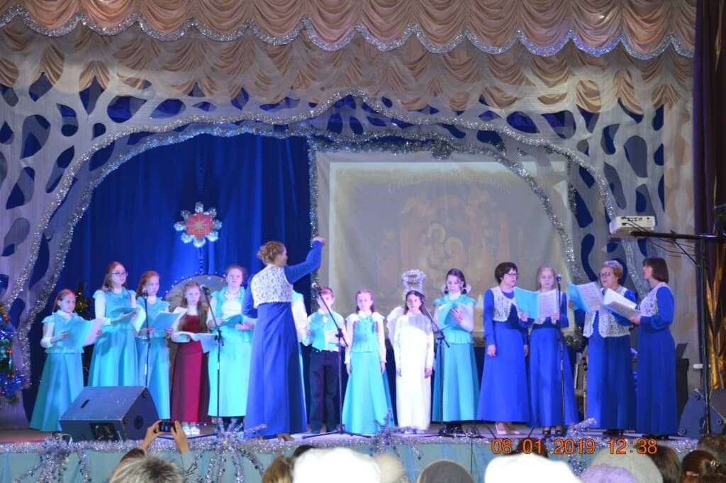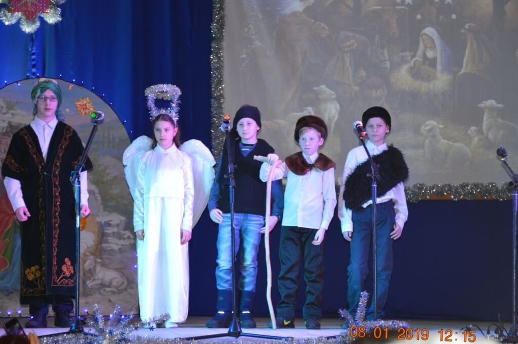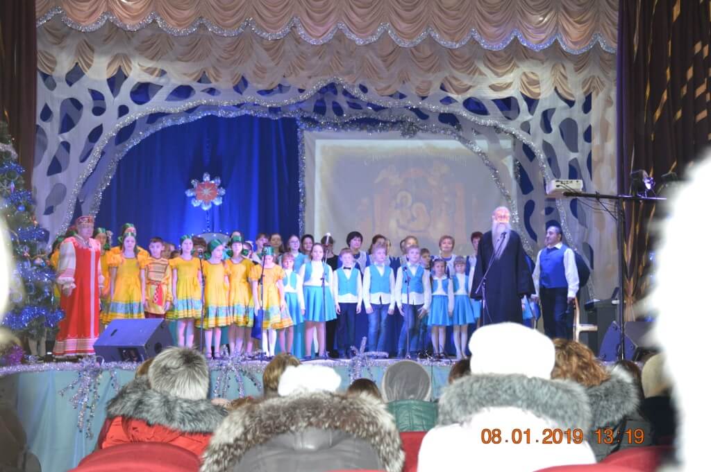 Ведущие программы Е.А. Чернышова и воспитанницы воскресной школы Ксения Перепелица и Нина Смирнова знакомили зрителей с теми далекими временами и событиями, но близкими и дорогими сердцу каждого христианина: с волхвами, пастухами, ангелами, которые пришли к Младенцу (сценический номер, подготовленный воспитанниками старшей группой воскресной школы); «…цветы, травы и все живое славило маленького Христа» – танцевальные номера «Цветочки», «Маленькие снежинки» дошкольников МБДОУ д/с №1; трогательные и поучительные стихи, песни и сценки, задорные танцы в исполнении ребят МБОУ СШ №1 и №2, учащихся, Дома детского творчества и музыкальное сопровождение сценических номеров учащихся из Детской школы искусств.