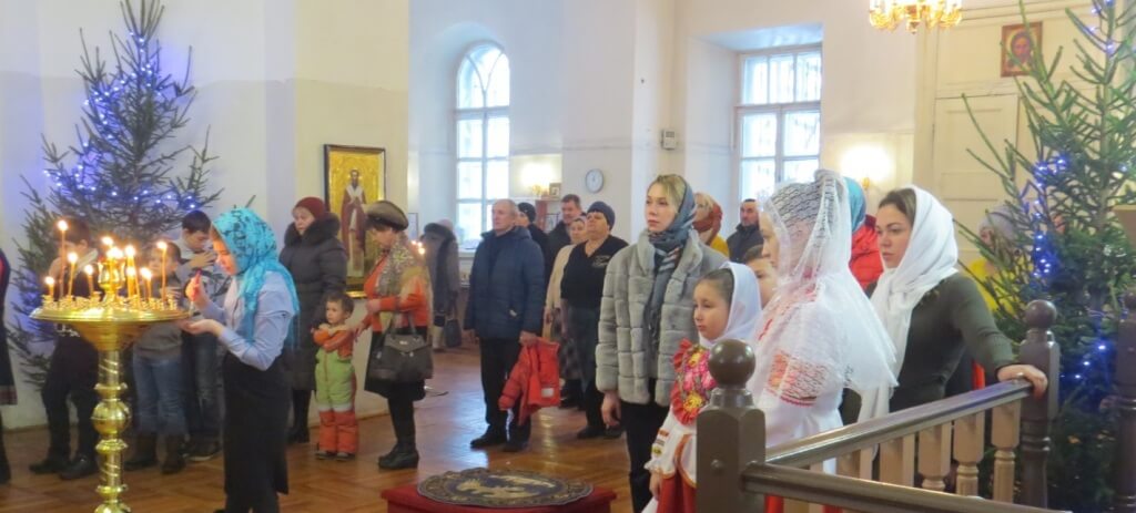 7 января 2019 года в Тихвинском храме Архиерейского подворья Благовещенского собора г. Гагарин состоялась детская Божественная Литургия. Богослужение возглавил иерей Роман Ступа.