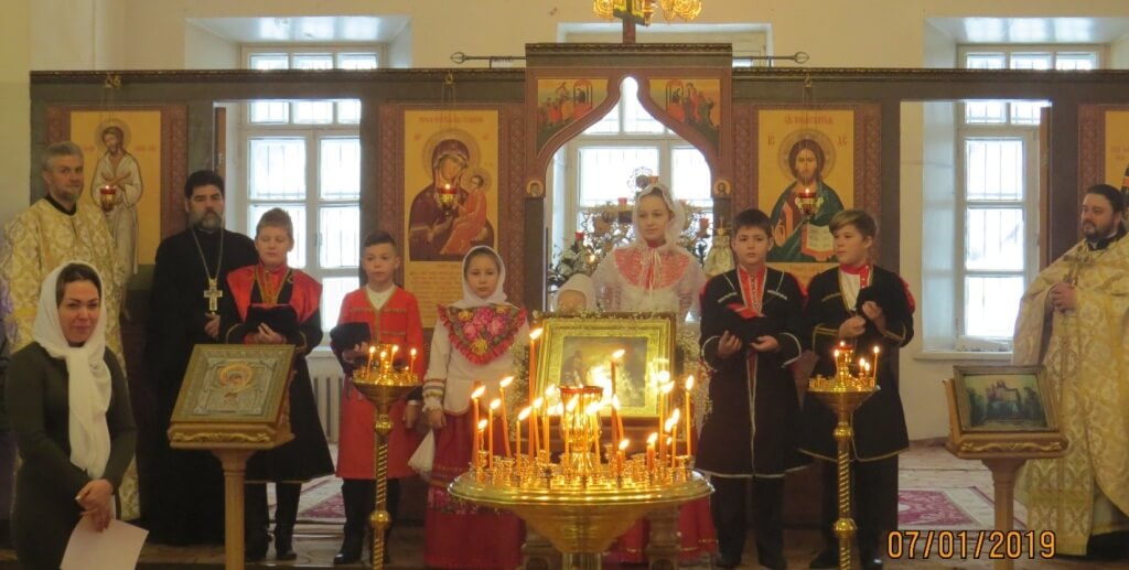 Детский Казачий хор исполнил для всех прихожан Рождественские песнопения, прославляющие Господа нашего Иисуса Христа