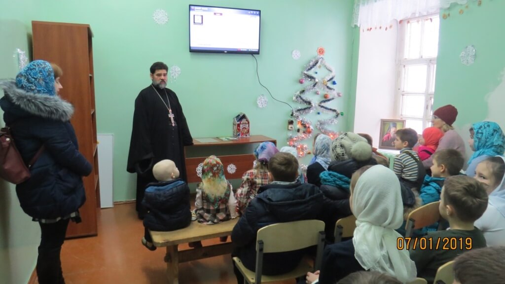 «Мы сегодня празднуем величайшее событие – Рождество Христово. И в этом празднике мы желаем себе подарков, доброго, веселого настроения, не болеть, не унывать , чтобы все было мирно и с мамой, и с папой, и в кругу семьи. И чтобы улыбки товарищей, друзей не покидали нас, чтобы все было дружно и простительно. Вот так вот ребята сегодня мы прославляем Господа – того нашего родителя, который и создал нашу землю и которому вы сегодня приносили свое смирение. Вы подходили сегодня к Чаше Жизни, получили Святые Дары и про себя говорили: Господи, прости нас , если мы папу с мамой не слушались, если кого-то огорчили, брата или сестру, Господи, прости нас, пускай у нас все будет хорошо, в нашей семье, у наших родителей, во всем мире и чтобы не было войны, чтобы была дружба, чтобы насколько возможно в этом мире была любовь, как и в нашей душе, семье и всем нашем существе. Поэтому ребята, Господь сегодня вам даровал величайший подарок : вы сегодня принесли смирение терпение и прощение, а господь сподобил нас причаститься и соединиться с воскресшей и рожденной любовью. Любовь – это то чувство , когда мы не помним зла, когда хорошо на душе, когда мы никого не огорчаем и сами ничем не огорчаемся. Будем же говорить Господи , спасибо тебе за все. Пусть это чувство будет главным состоянием души. Поздравляю Вас с великим праздником. Пусть в вашем сердце сегодня родится Иисус Христос!»
