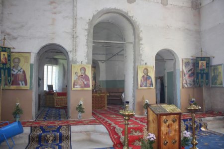 среди икон первого (местного) ряда, кроме икон Спасителя и Пресвятой Бого-родицы, имелись образы святителя Питирима Тамбовского и Иоанна Предтечи с преподобным Аркадием Вяземским в серебряных окладах. В приделе препо-добного Нила Столбенского: Деревянный одноярусный иконостас, выкрашен-ный белой краской. В нем иконы преподобного Нила, Смоленской и Иверской Божией Матери в серебряных вызолоченных окладах. В приделе Димитрия Со-лунского: Такой же одноярусный иконостас, в нем иконы Двунадесятых празд-ников, Собор мучеников, Димитрия Солунского. В прочих местах храма были образы преподобного Серафима Саровского, Колочской Божией Матери в окладах. В храме хранились: Плащаница Спасителя, вышитая золотыми и се-ребряными нитями по малиновому бархату, обложенная золотой бахромой с кистями; три полных комплекта серебряных вызолоченных, богослужебных сосудов (потир, звездица, лжица, тарелочки). В том же 1922 году такие описи послужили основанием для властей к изъятию церковных ценностей из всех храмов по всей стране. (9)