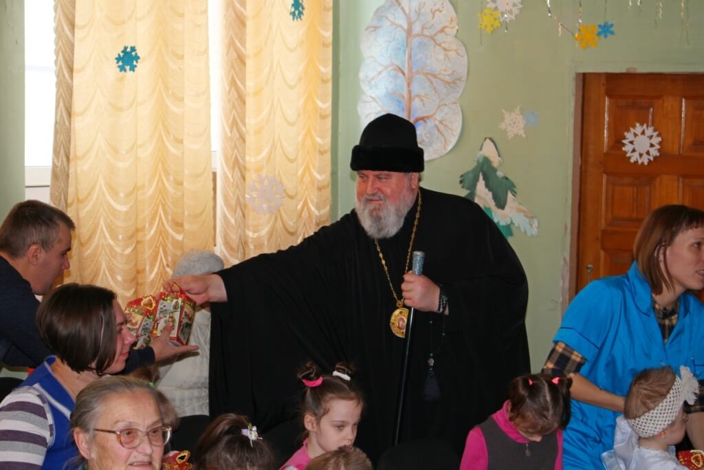 В завершении праздничной программы, епископ Сергий совместно с духовенством подарили каждому из детей по сладкому подарку.